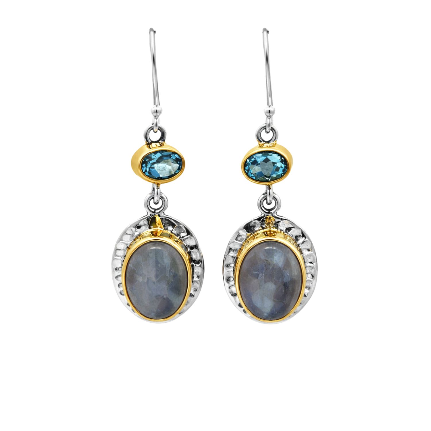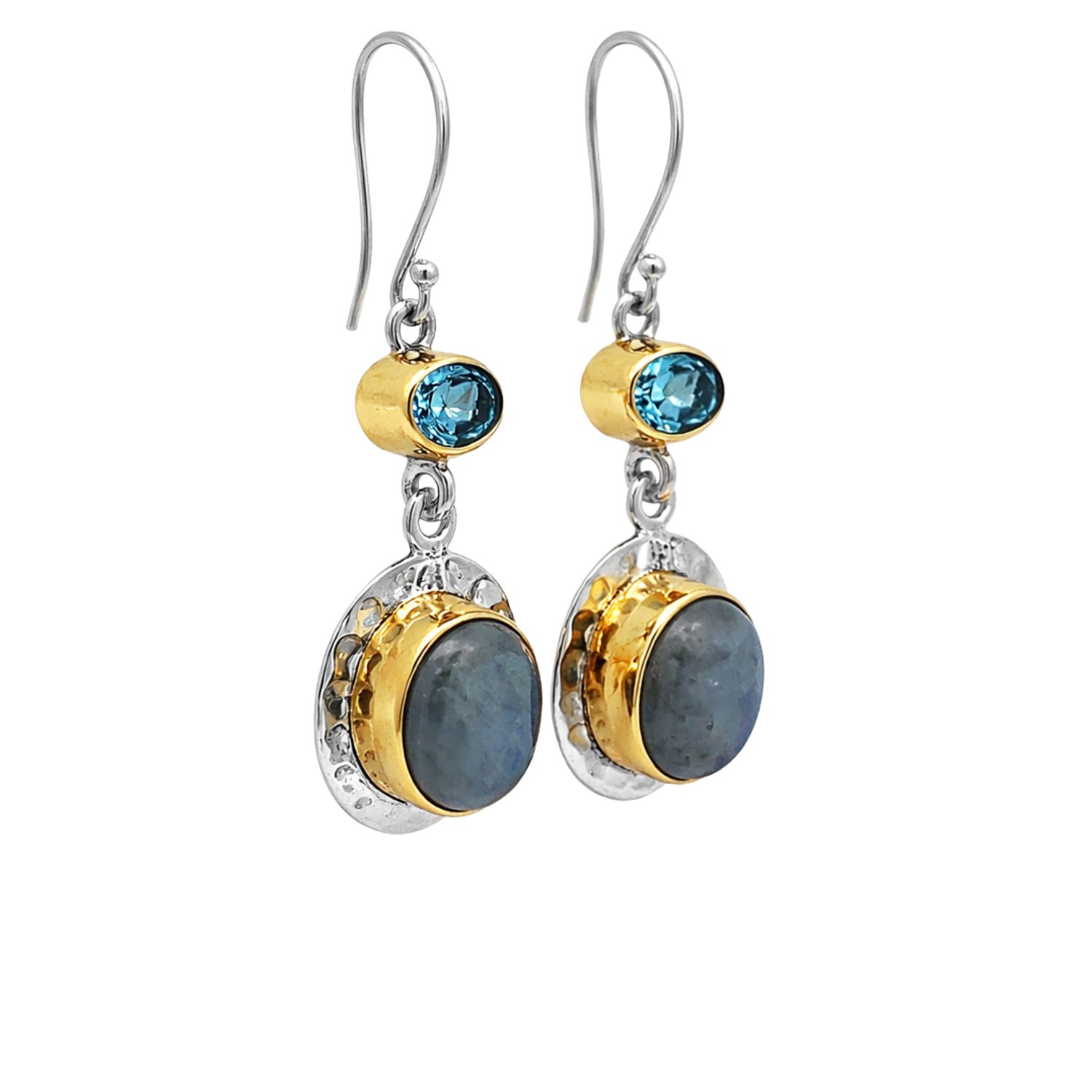 Artystyczne kolczyki z Topazem i Kamieniem Księżycowym srebrne HANDMADE
