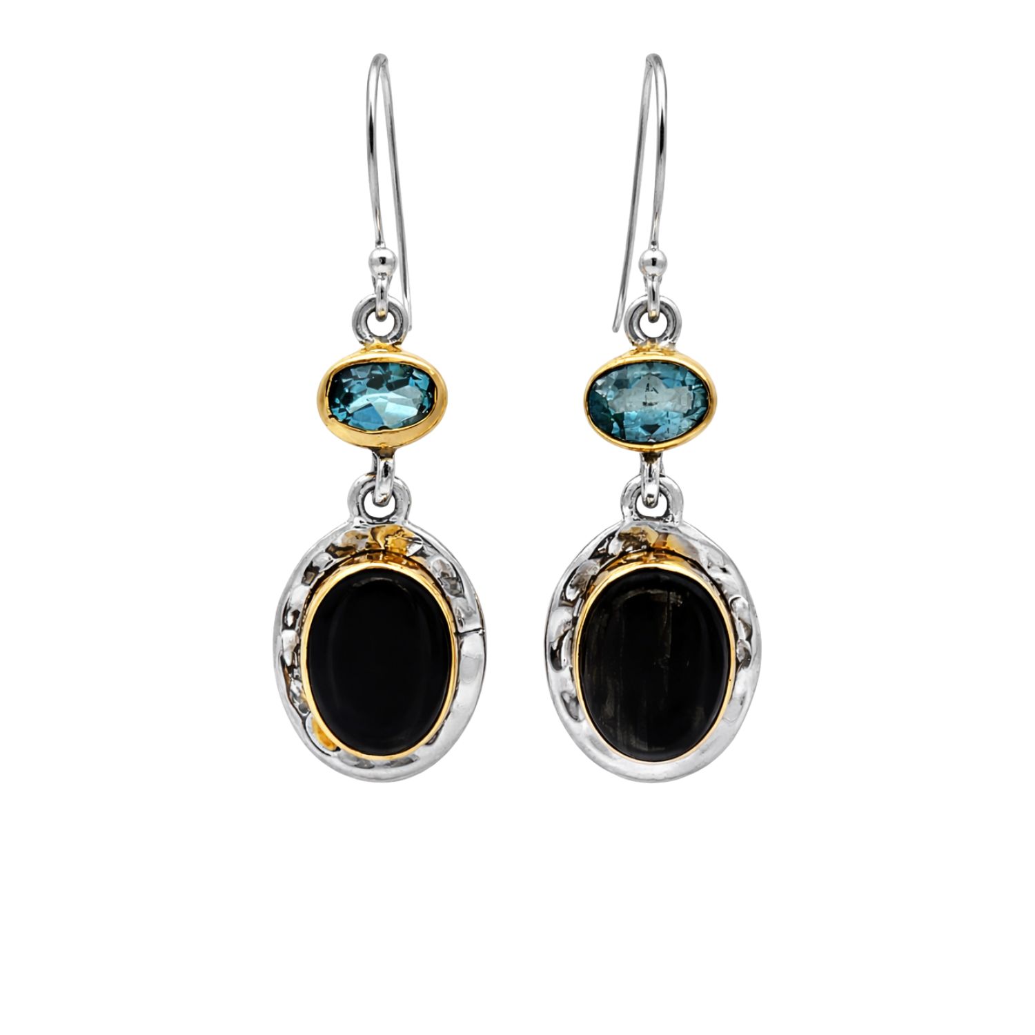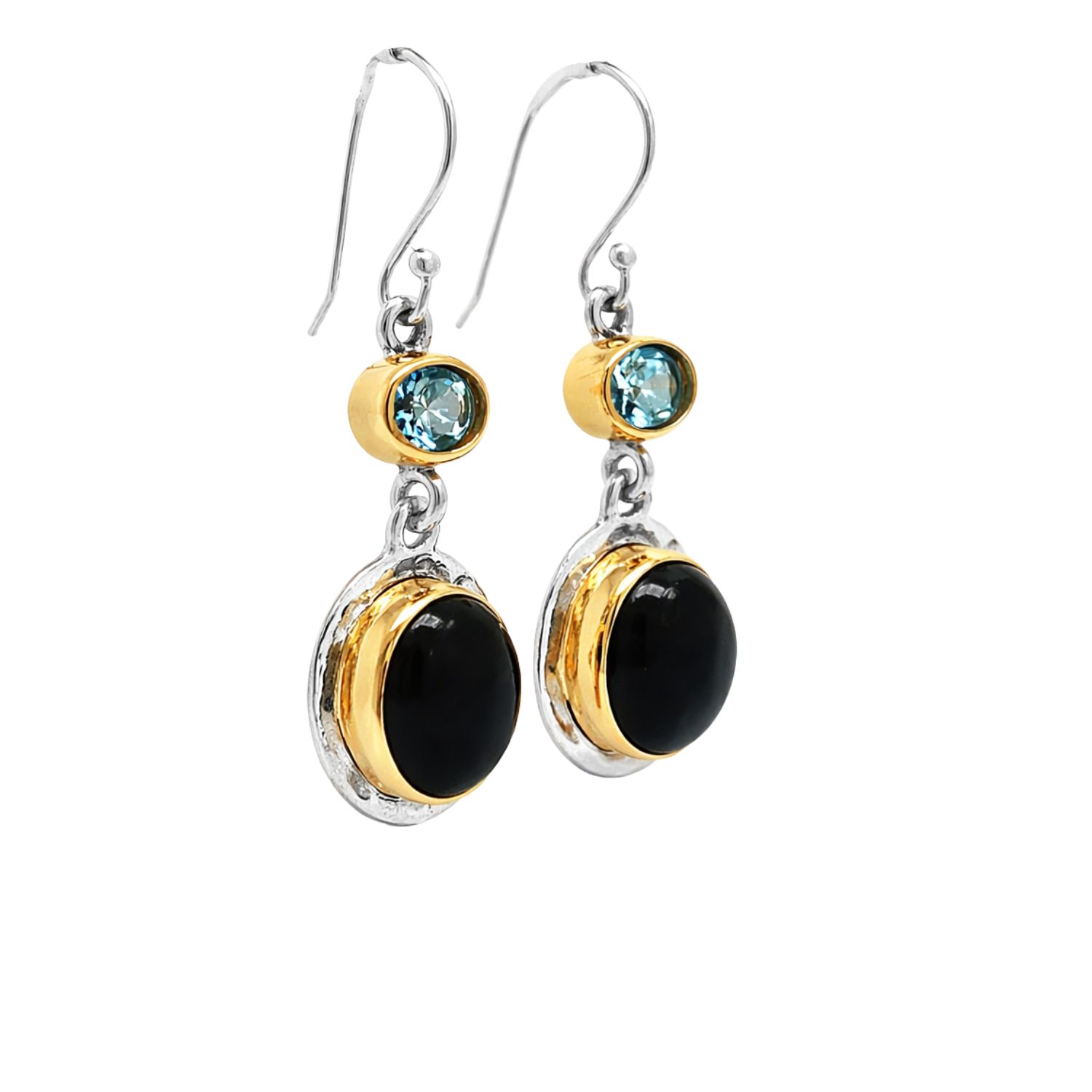 Artystyczne kolczyki z Topazem i Labradorytem srebrne HANDMADE wykonany z najwyższej próby srebra 925 – bez niklu, nie uczula.