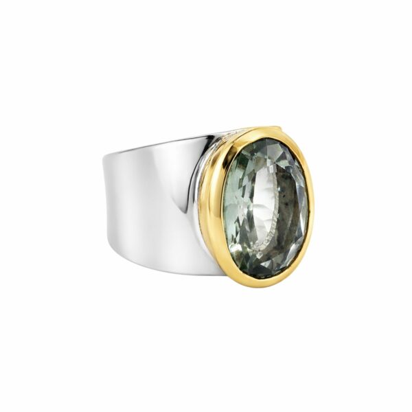Artystyczny Pierścionek szeroka obrączka z Zielonym Ametystem srebrny HANDMADE wykonany z najwyższej próby srebra 925 – bez niklu, nie uczula.
