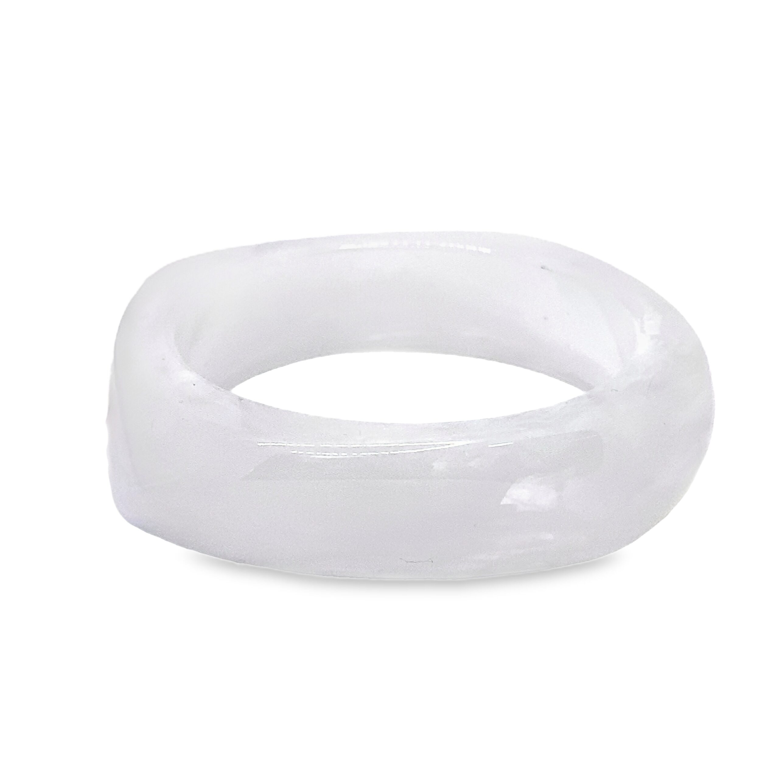 Subtelna i elegancka bransoletka bangle w odcieniu mlecznej bieli. Jej gładka, lśniąca powierzchnia oraz organiczny kształt podkreślają minimalistyczny charakter. Lekka, wygodna i ponadczasowa – idealna dla kobiet ceniących prostotę i nowoczesny styl w biżuterii. Wykonana z najwyższej jakości żywicy.