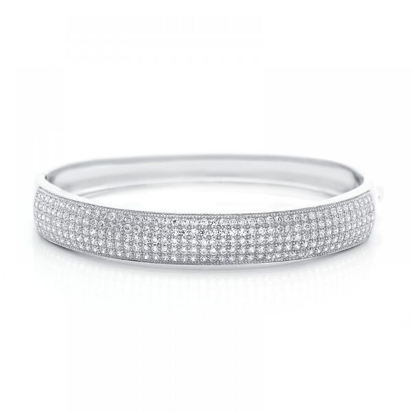 Bransoletka ozdobiona cyrkoniami, wykonana ze srebra rodowanego próby 925. Szerokość bransoletki 5 cm x 6 cm. Grubość bransoletki 10 mm. Dzięki warstwie rodu biżuteria nie tylko elegancko wygląda, ale i charakteryzuje się dużą trwałością i wytrzymałością na działanie szkodliwych czynników zewnętrznych.