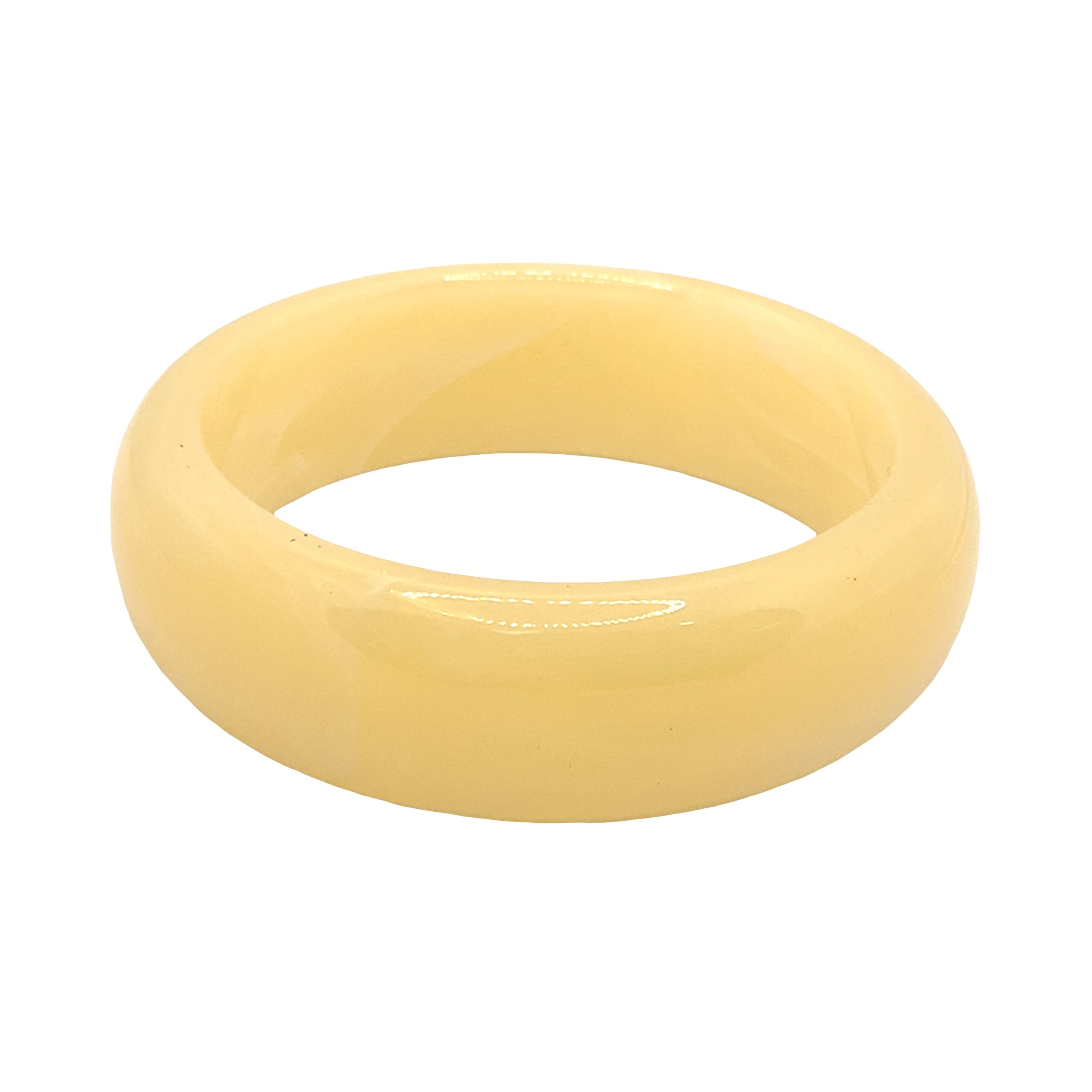 Bransoletka bangle w odcieniu żółci to połączenie prostoty i elegancji. Wykonana z żywicy, ma gładką, polerowaną powierzchnię o szklistym połysku. Jej minimalistyczny, sztywny kształt bez zapięcia nadaje całości wyrafinowany charakter, idealny dla kobiet ceniących nowoczesny styl i subtelny luksus.