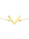 Bransoletka z zawieszką w kształcie litery V. Bransoletka wykonana ze srebra 925, dodatkowo pokryta warstwą 24 karatowego złota. Długość bransoletki regulowana: 16-19 cm. Wielkość zawieszki: 12×12 mm