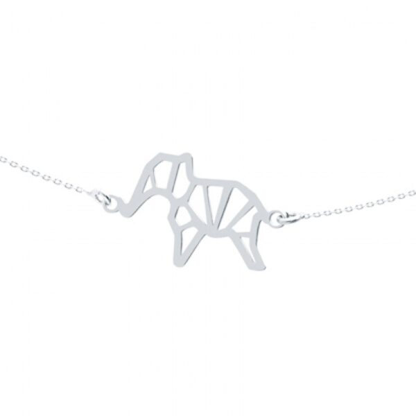 Bransoletka z zawieszką origami w kształcie słonia. Bransoletka wykonana ze srebra próby 925 uszlachetnionego warstwą rodu. Długość bransoletki 17-20 cm. Wielkość zawieszki: 20×22 mm.