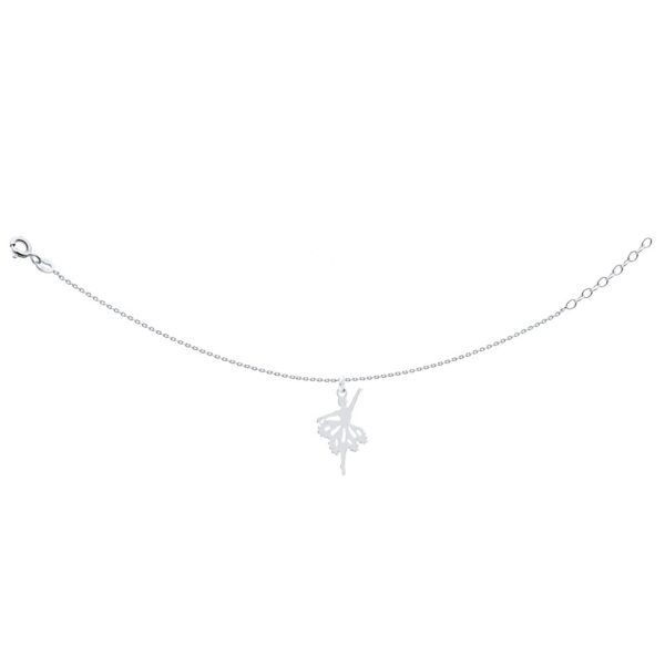 Bransoletka Celebrytka wykonana ze srebra próby 925, dodatkowo uszlachetniony rodem. Wielkość zawieszki ok. 20×10 mm. Długość łańcuszka: 17-20 cm.