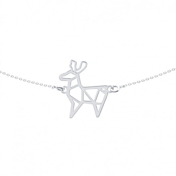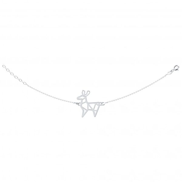 Bransoletka z zawieszką origami w kształcie sarenki. Bransoletka wykonana ze srebra próby 925 uszlachetnionego warstwą rodu. Długość bransoletki 17-20 cm. Wielkość zawieszki: 20×12 mm.