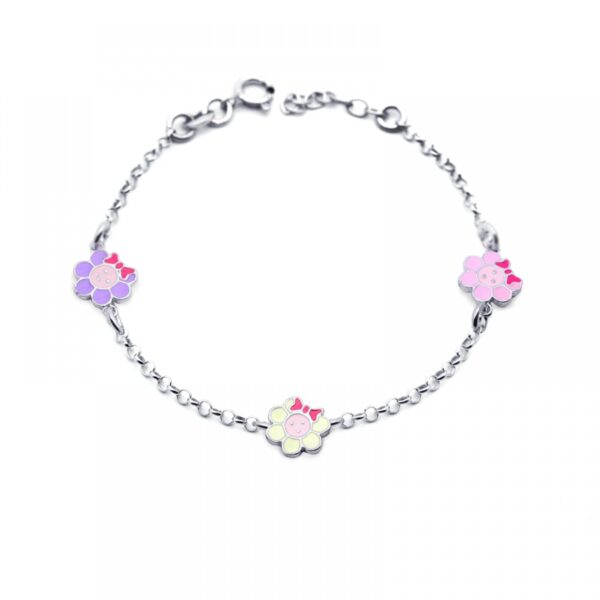 Bransoletka dla dzieci kwiatuszki srebrna