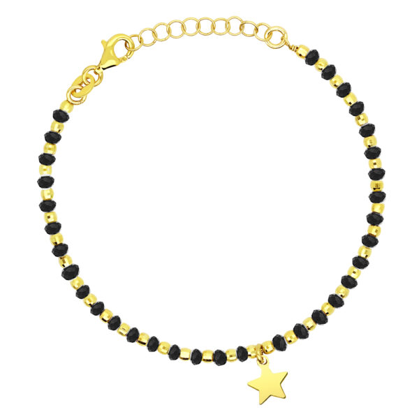 Bransoletka koralikowa srebrna pozłacana gwiazdka i czarne kryształki