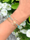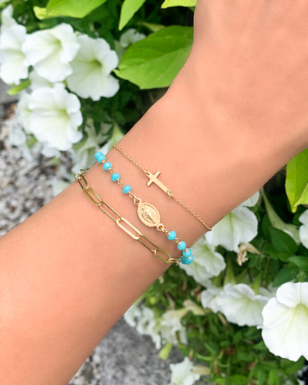 Bransoletka świetnie prezentuje się noszona samodzielnie, jak i w zestawieniu z naszyjnikiem łańcuchem dostępnym w naszym sklepie.