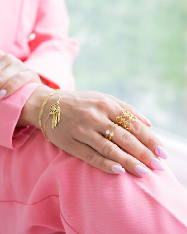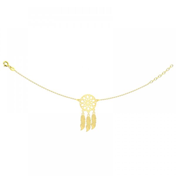 Bransoletka z zawieszką w kształcie łapacza snów, wykonana ze srebra próby 925 oraz pokryta warstwą 24 karatowego złota. Ta delikatna bransoletka z kolekcji „Celebrytka” idealnie podkreśla kobiecą subtelność oraz piękno. Bransoletka ta nadaje się nie tylko do codziennych stylizacji ale również na wieczorne wyjścia. Długość bransoletki 17-20 cm. Szerokość zawieszki 15 mm.