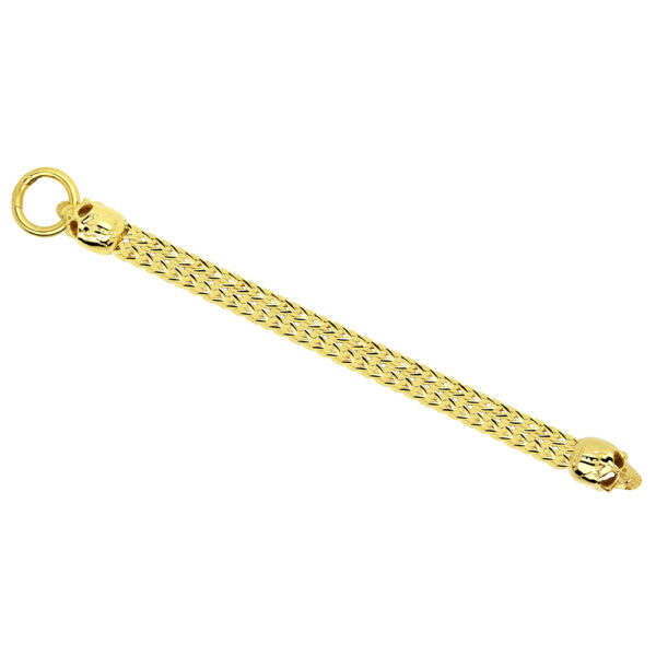 Bransoletka męska gruba z czaszkami skórzana pleciona stal szlachetna