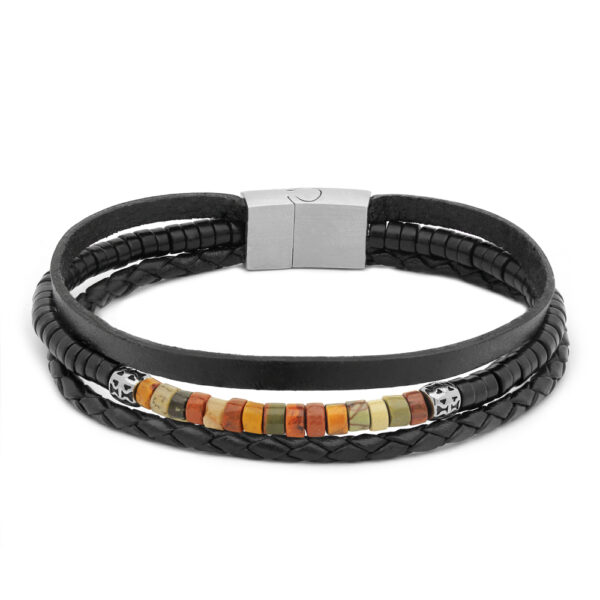 Bransoletka męska skórzana potrójna z onyksem stal szlachetna