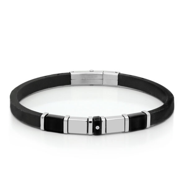 Bransoletka męska stal szlachetna z kauczukiem i cyrkonią