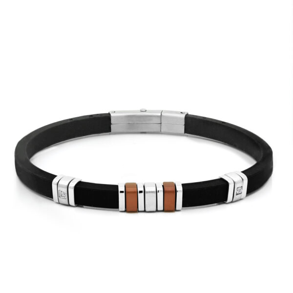 Bransoletka męska stal szlachetna z kauczukiem i cyrkoniami