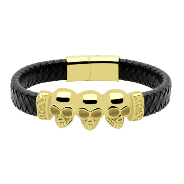 Bransoletka męska z czaszkami stal szlachetna pozłacana