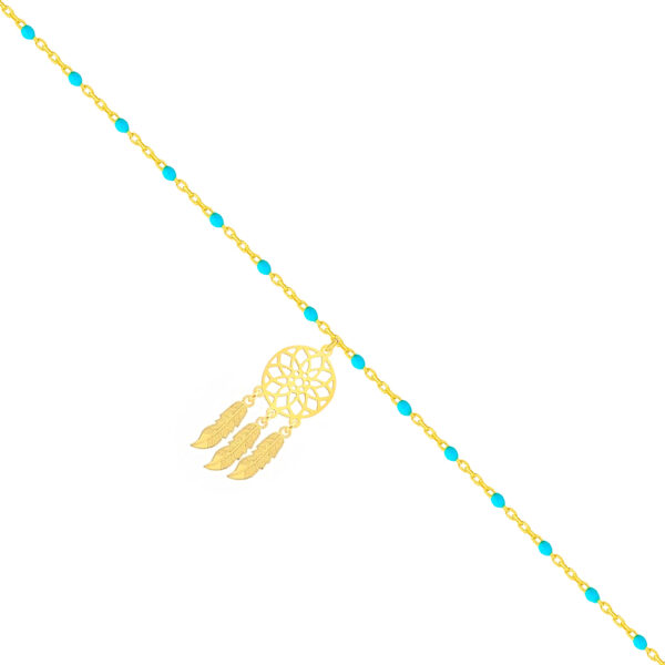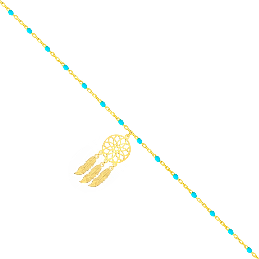 Bransoletka na nogę łapacz snów z niebieskimi koralikami srebrna pozłacana wykonano z najwyższej próby srebra 925 – bez niklu, nie uczulają.