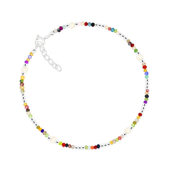 Bransoletka na nogę srebrna kolorowe kryształki swarovskiego oraz perełki