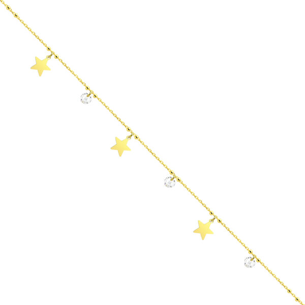 Bransoletka na nogę srebrna pozłacana gwiazdki i białe kryształki