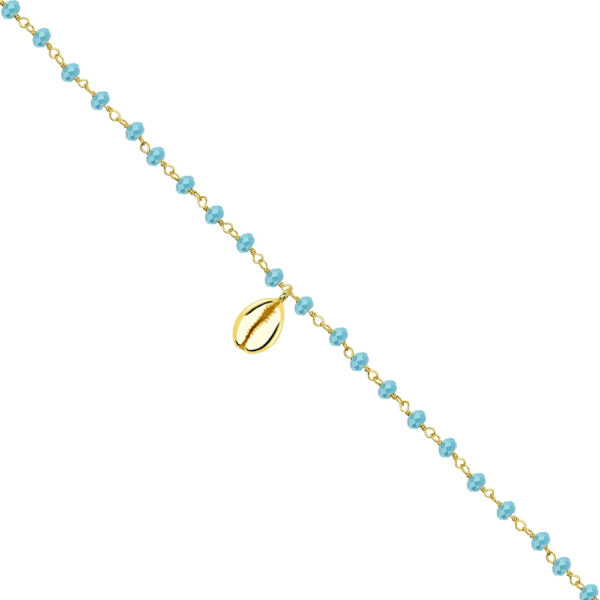 Bransoletka na nogę srebrna pozłacana muszelka niebieskie koraliki