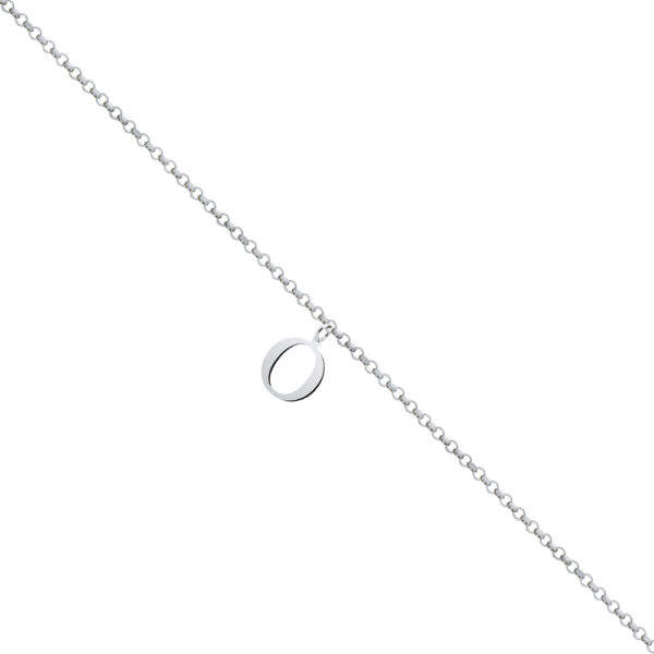Bransoletka na nogę srebrna z literką O. Biżuteria modowa wykonana z najwyższej próby srebra 925 – bez dodatku niklu, nie uczula. Bransoletka dodatkowo uszlachetniona 3 warstwami szlachetnego rodu. Wielkość Litery O: 10×10 mm. Literka O o strukturze gładkiej i błyszczącej, zawieszona na łańcuszku o splocie typu ankier, regulowanym o długości od 21 do 26 cm. Splot ankier jest jednym z najmocniejszych splotów, odpornym na zerwania oraz uszkodzenia. Wyrób jubilerski wysokiej jakości wykonany przez mistrzów jubilerstwa z dużą precyzją i dbałością o detale.