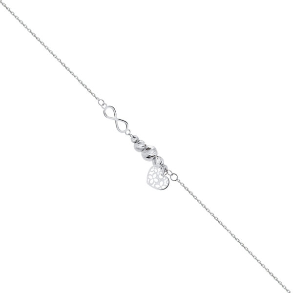 Bransoletka na nogę srebrna z serduszkiem i infinity
