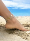 Bransoletka na kostkę jest wykonana z wysokiej jakości materiałów i ozdobiona lśniącymi kryształkami. Ten modny i stylowy akcent podkreśla Twój indywidualny styl i dodaje blasku Twojej letniej garderobie.