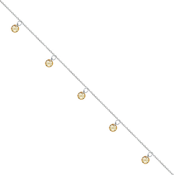Bransoletka na nogę srebrna z żółtymi kryształkami