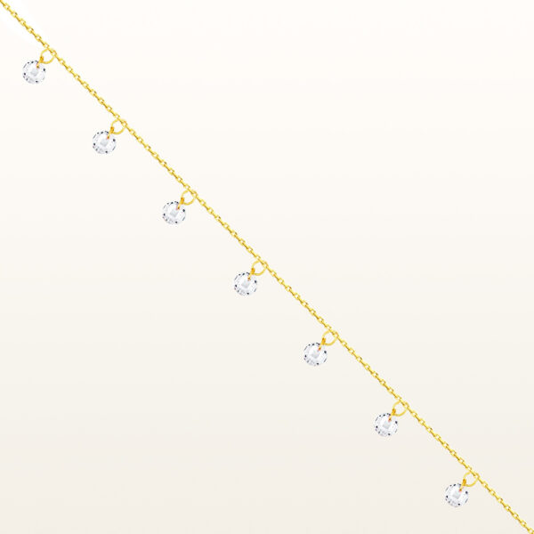 Bransoletka na nogę z białymi kryształkami srebrna pozłacana wykonana z najwyższej próby srebra 925 – bez dodatku niklu, nie uczula. Biżuteria dodatkowo pokryta 3 warstwami 24 karatowego złota. Długość bransoletki: 23,5-27 cm. Precioza ozdobiona białymi kryształkami swarovskiego. Wyrób jubilerskiwysokiej jakości wykonany przez mistrzów jubilerstwa z ogromną precyzją oraz dbałością o detale
