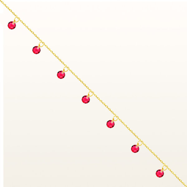 Bransoletka na nogę z czerwonymi kryształkami srebrna pozłacana wykonana z najwyższej próby srebra 925 – bez dodatku niklu, nie uczula. Biżuteria dodatkowo pokryta 3 warstwami 24 karatowego złota. Długość bransoletki: 23,5-27 cm. Precioza ozdobiona czerwonymi kryształkami swarovskiego. Wyrób jubilerskiwysokiej jakości wykonany przez mistrzów jubilerstwa z ogromną precyzją oraz dbałością o detale