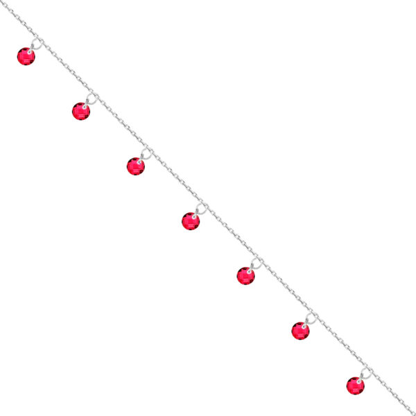 Bransoletka na nogę z czerwonymi kryształkami srebrna