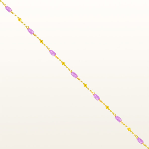 Bransoletka na nogę z fioletowymi kryształkami srebrna pozłacana wykonana z najwyższej próby srebra 925 – bez dodatku niklu, nie uczula. Biżuteria dodatkowo pokryta 3 warstwami 24 karatowego złota. Długość bransoletki: 22,5-26 cm. Precioza ozdobiona fioletowymi kryształkami swarovskiego. Wyrób jubilerski wysokiej jakości wykonany przez mistrzów jubilerstwa z ogromną precyzją oraz dbałością o detale.