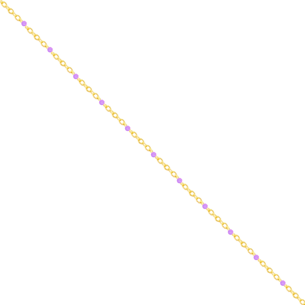 Bransoletka na nogę z fioletowymi kuleczkami srebrna pozłacana wykonana z najwyższej próby srebra 925 – bez dodatku niklu, nie uczula.