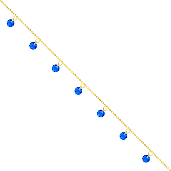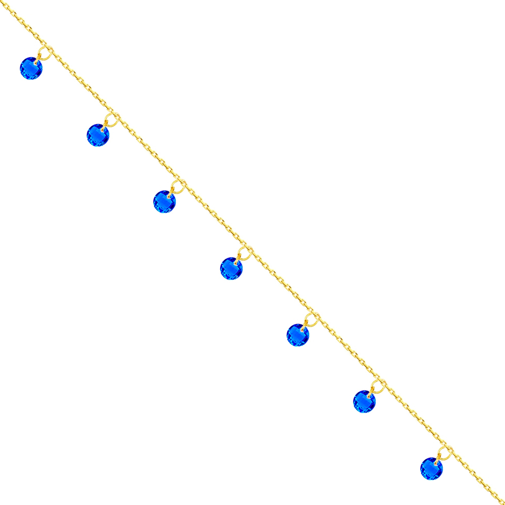 Bransoletka na nogę z granatowymi kryształkami srebrna pozłacana wykonana z najwyższej próby srebra 925 – bez dodatku niklu, nie uczula.
