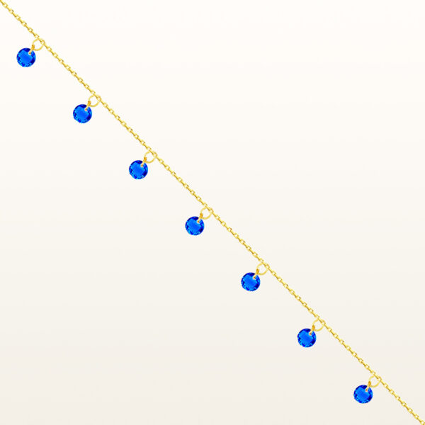 Bransoletka na nogę z granatowymi kryształkami srebrna pozłacana