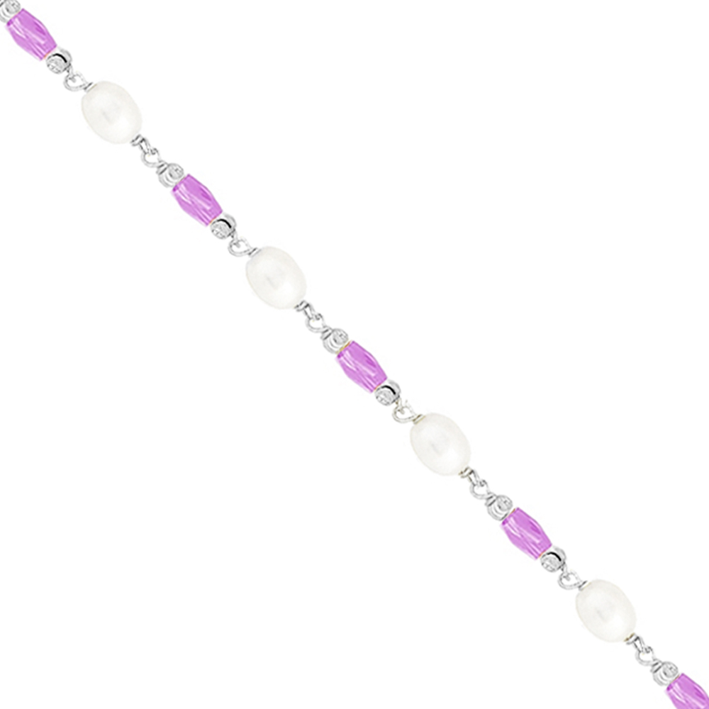 Bransoletka na nogę z perłami oraz fioletowymi kryształkami srebrna wykonana z najwyższej próby srebra 925 – bez dodatku niklu, nie uczula. Biżuteria dodatkowo pokryta 3 warstwami szlachetnego rodu. Długość bransoletki: 22-25,5 cm. Precioza ozdobiona naturalną perłą hodowlaną słodkowodną oraz fioletowymi kryształkami swarovskiego. Wyrób jubilerski wysokiej jakości wykonany przez mistrzów jubilerstwa z ogromną precyzją oraz dbałością o detale.