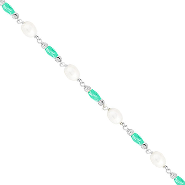 Bransoletka na nogę z perłami oraz zielonymi kryształkami srebrna