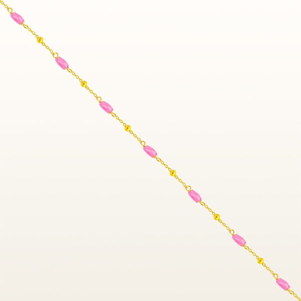 Bransoletka na nogę z różowymi kryształkami srebrna pozłacana wykonana z najwyższej próby srebra 925 – bez dodatku niklu, nie uczula. Biżuteria dodatkowo pokryta 3 warstwami 24 karatowego złota. Długość bransoletki: 22,5-26 cm. Precioza ozdobiona różowymi kryształkami swarovskiego. Wyrób jubilerski wysokiej jakości wykonany przez mistrzów jubilerstwa z ogromną precyzją oraz dbałością o detale.