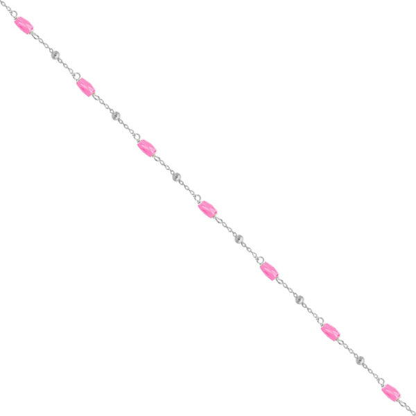 Bransoletka na nogę z różowymi kryształkami srebrna wykonana z najwyższej próby srebra 925 – bez dodatku niklu, nie uczula. Biżuteria dodatkowo pokryta 3 warstwami szlachetnego rodu. Długość bransoletki: 22,5-26 cm. Precioza ozdobiona różowymi kryształkami swarovskiego. Wyrób jubilerski wysokiej jakości wykonany przez mistrzów jubilerstwa z ogromną precyzją oraz dbałością o detale.