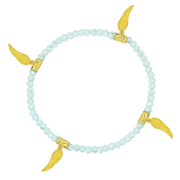 Bransoletka na nogę ze skrzydełkami i koralikami ze stali szlachetnej, wykonana z kryształków, ozdobiona zawieszkami skrzydełkami ze stali szlachetnej.