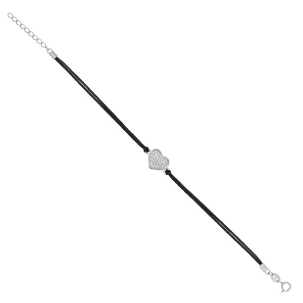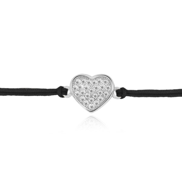 Bransoletka na sznurku czarnym srebrna serduszko z cyrkoniami