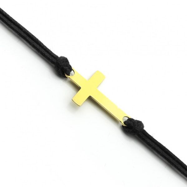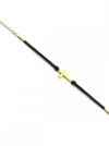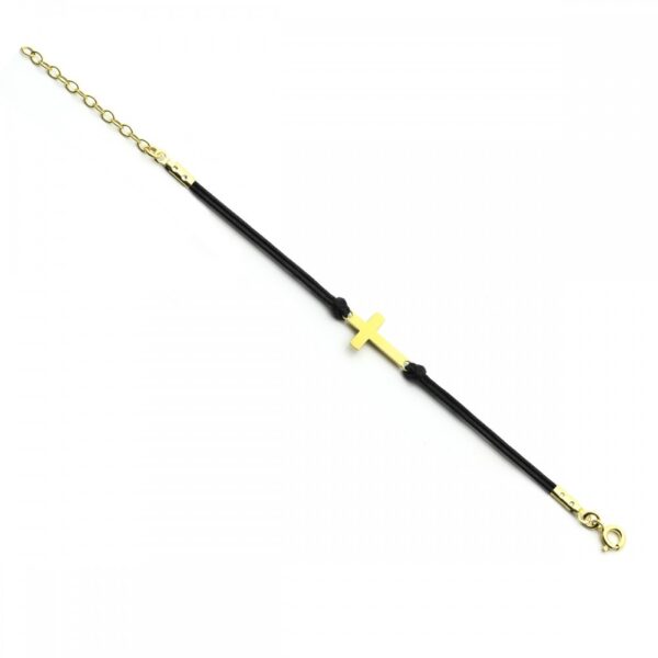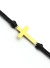 Bransoletka na sznurku czarnym srebro pozłacane z krzyżem