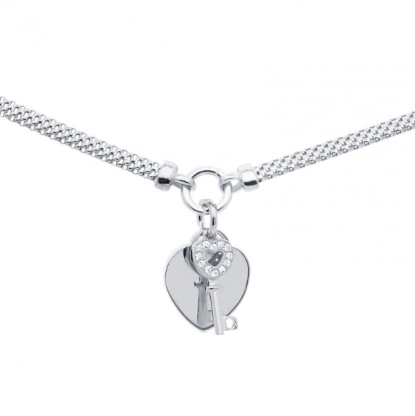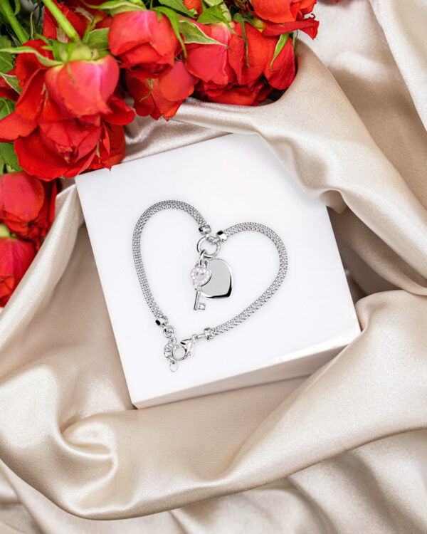 Bransoletka serce srebrna z kluczykiem i cyrkonią
