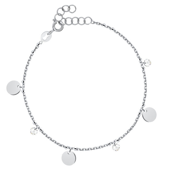 Bransoletka wykonana z najwyższej Próby Srebra 925 – bez dodatku niklu, nie uczula. Bransoletka pokryta 3 warstwami szlachetnego rodu. Długość bransoletki: 16-19 cm. Bransoletka ozdobiona czarnymi kryształkami Swarovski oraz zawieszkami kółkami. Biżuterię z tym motywem można założyć do codziennej stylizacji, ale będzie też ciekawym dodatkiem podczas oficjalnych spotkań. Bransoletka z kółkami będzie idealną propozycją na prezent.