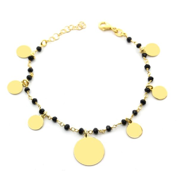 Bransoletka srebrna pozłacana kółka i czarne kryształki