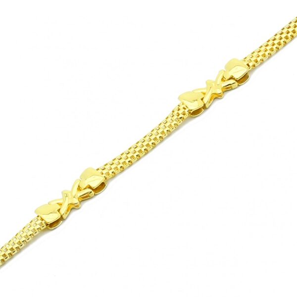 Bransoletka wykonana ze srebra próby 925 oraz pokryta warstwą 18 karatowego złota. Długość bransoletki 17-21 cm. Szerokość bransoletki 3 mm.