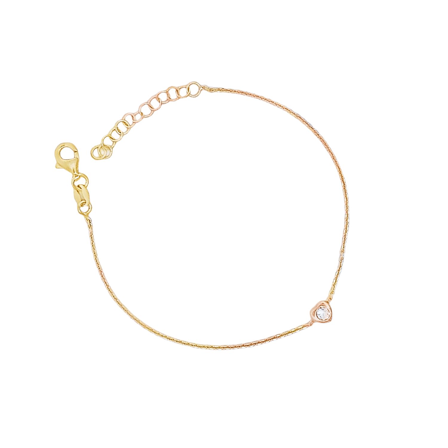 Bransoletka srebrna pozłacana serce z cyrkonią
