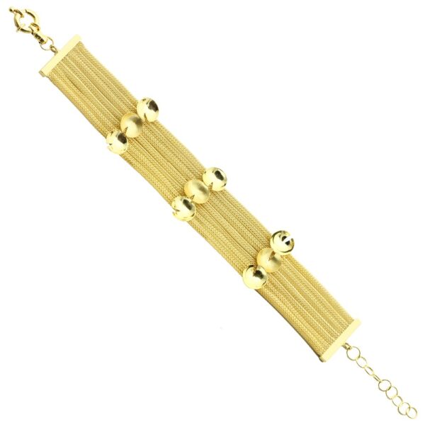 Bransoletka wykonana ze srebra próby 925, dodatkowo pokryta 5 mikronami złota. Długość bransoletki wraz z regulacją: 18-22,5 cm. Biżuteria artystyczna, wykonana ręcznie z największą precyzją i dbałością o szczegóły.