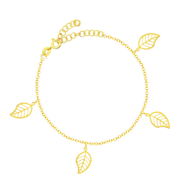 Bransoletka srebrna pozłacana z motywem liści wykonana z najwyższej próby srebra 925 – bez dodatku niklu, nie uczula. Biżuteria dodatkowo pokryta 3 warstwami 24 karatowego złota. Długość regulowana: 17-20 cm. Odkryj piękno natury, nosząc tę subtelnie elegancką bransoletkę z motywem liści.