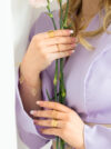 Biżuteria doskonała na każdą okazję jest idealnym wyborem dla kobiety, która ceni sobie subtelną elegancję i symboliczne motywy w biżuterii. Ten delikatny, ale wyrazisty dodatek doda klasy każdej stylizacji. Doskonale pasuje do naszyjnika oraz kolczyków z motywem liści, tworząc w pełni skoordynowany zestaw.