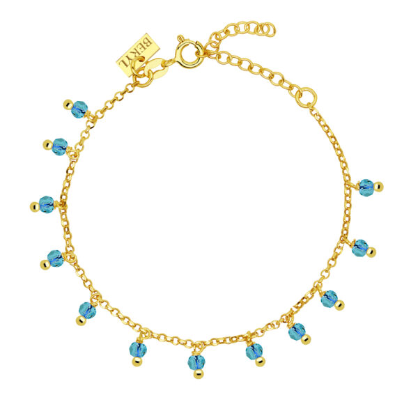 Bransoletka srebrna pozłacana z niebieskimi koralikami